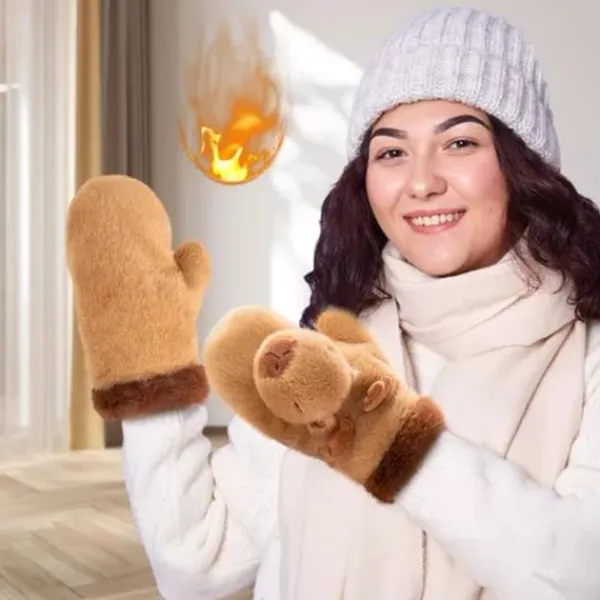 1 Par Söta Varma Kort Capybara Plyschhandskar