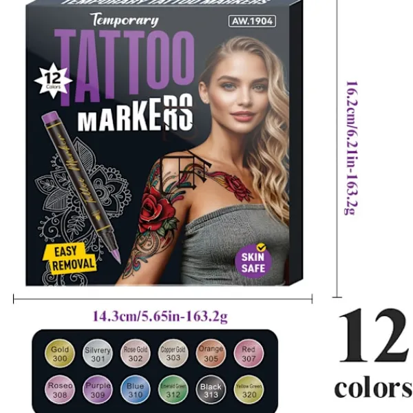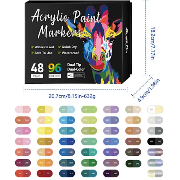 1. 12 Livfulla färger: En mängd färgglada pennspetsar gör att du fritt kan blanda och matcha färger för att skapa iögonfallande nagelkonstdesigner. Perfekt för att skapa djärva men sofistikerade mönster.