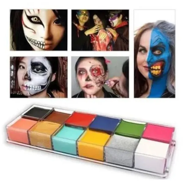 1. Torkar på 30 sekunder: Den kosmetiska paletten torkar på 30 sekunder, och det tar inte lång tid att röra mönstret med händerna, så den är lämplig för att rita lager-för-lager-mönster. 2. 12 Färger: Ansiktsmålningspaletten har totalt 12 färger, samt vackra toner, och den kommer att ha utmärkt pigmentering för att skapa en charmig och stilfull look. 3. Användning: Ansiktsmålningspaletten kan användas för brudstyling, professionell kroppsmålningsundervisning, modellcatwalks, födelsedagsfester. 4. Gåva: Den vattenbaserade kosmetiska paletten är mycket utsökt, den är idealisk som en gåva till vänner och familj, och den kan också ges som en gåva till jul, födelsedag. 5. Multi Material: Den vattenbaserade kosmetiska paletten är gjord av kalciumkarbonat, glycerin, gummi arabicum och pigment, som är säkra och bekväma för dig att använda.