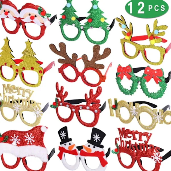 【Paket ingår】 Ett paket innehåller 12 olika stilar av julglitterfestglasögonbågar, lämplig storlek för de flesta.^