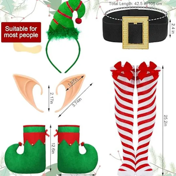 Ger Pålitlig Kvalitet: Jultomtens hjälpreda kostym skoskydd och klänning är gjorda av pleuche som innehåller polyester och spandex, med en slät yta, lätt vikt och bekväm att röra vid; Jul tomteklänning tillbehörsset är tvättbart och kan återanvändas många gånger