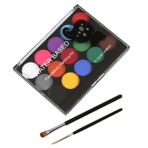 Beskrivning: Kroppsfärg: Ansikts- och kroppsfärgtillbehör, professionell palett: Ljusa färger, vattenlösliga pigment, lätta att rengöra, kan användas av vuxna och barn. Lätt att applicera: Lättpigmenterad vattenbaserad formula ger jämn, stark täckning och fäster hela dagen. 15 färger: Du kan blanda färger efter din kreativitet olika speciella mönster. Tillämpligt: Lämplig för barns födelsedagskostym, festival, barns temafest, cosplayfest, cosplay, Halloween-smink. Specifikation: Material: Pigment Storlek (: ca. 14,5 cm x 10,5 cm/5,71 tum x 4,13 tum Paketet innehåller: 1 set ansikts- och kroppsmålningsverktyg Palett Obs: Tillåt små fel på grund av manuell mätning och olika bildskärmar.
