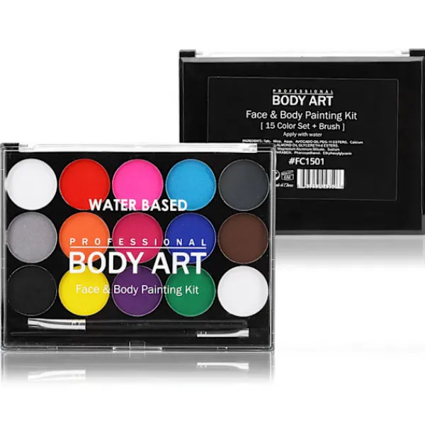Funktioner:1. Lämplig för födelsedag, nyår, underhållning, Thanksgiving, Halloween, etc.2. Säker vattenlöslig ansiktsfärg, grön, giftfri, smaklös och lätt att rengöra.3. Ljusa färger med pärlemoreffekt, det är coolt att dekorera.4. Femton färger, du kan noggrant välja för att lägga till roligt för dig.5. Beläggningen är certifierad att vara giftfri och fri från farliga kemikalier.6. Komplettera vilken outfit som helst med denna finish, vare sig det är djuransikte, mustasch, etc.7. Lämplig för alla tillfällen och firanden.Specifikation:Skick: 100% helt nyArtikeltyp: MålningssminksetMaterial: Vattenlöslig färgPaketlista:1 x Kroppsfärgset (15 färger)1 x Målningsborste av nylonObs:1. Denna produkt är lämplig för de flesta hudtyper. Testa den i ett okänsligt område före användning. Om det finns utslag, sluta använda den omedelbart.2. För barn över 3 år rekommenderas att använda under ledning av en vuxen. Efter användning, sätt på locket för att förhindra torkning. Om du av misstag rör dina ögon medan du målar, tvätta dem omedelbart med vatten.3. Observera att den nya typen och den gamla typen av denna produkt kommer att skickas slumpmässigt, och se till att du inte har något emot det innan du beställer.