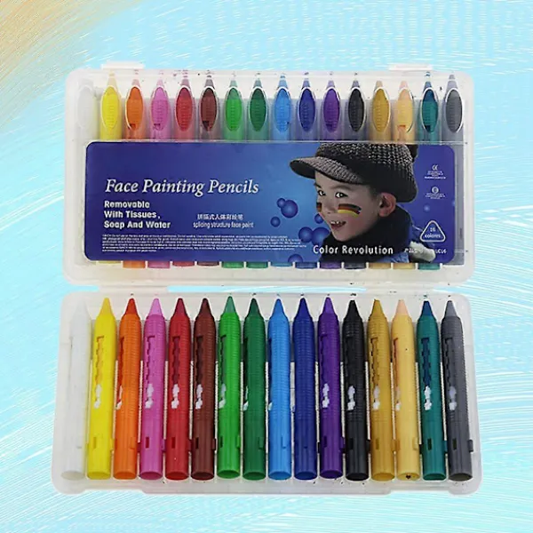 16 färger ansiktsfärger ger dina barn och deras vänner timmar av kreativt kul de aldrig kommer att glömma. Professionell speciellt designad för barn och vuxna. Torka enkelt bort din skapelse med en våtservett eller tvåltrasa. Perfekt för alla tillfällen, speciellt jul, maskerad, temafester, födelsedagsfester, karnevaler eller barn som leker, Halloween, etc.