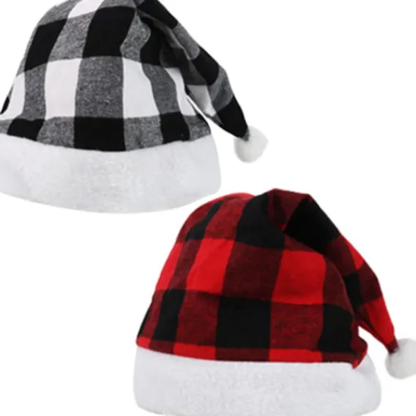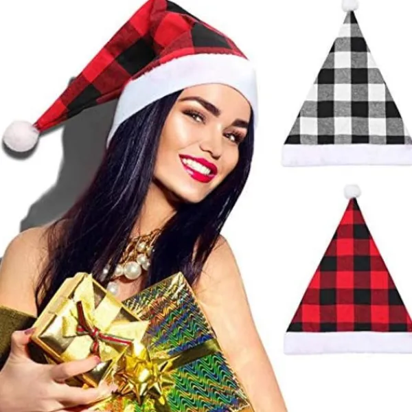 【Rutmönster】Dessa tomteluvor har klassiska julelemen, som rött och svart rutigt, svart och vitt rutigt; Den rutiga tomteluvan är söt och praktisk och ger en varm atmosfär till din jul^