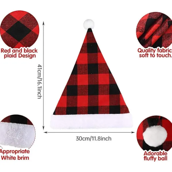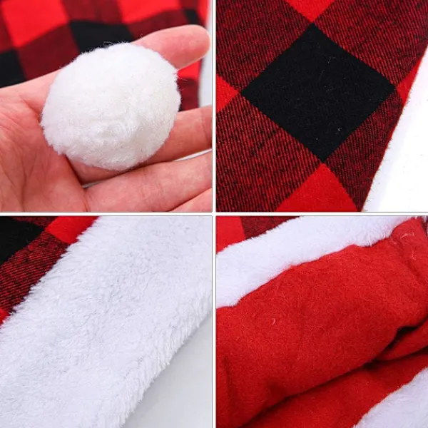 【Storleksdetaljer】Denna klassiska rutiga tomteluva har en inneromkrets på cirka 60 cm/23,6 tum, en plan höjd på 45 cm/17,7 tum och en bredd på 32 cm/12,5 tum, lämplig storlek för personer i de flesta åldrar att bära^