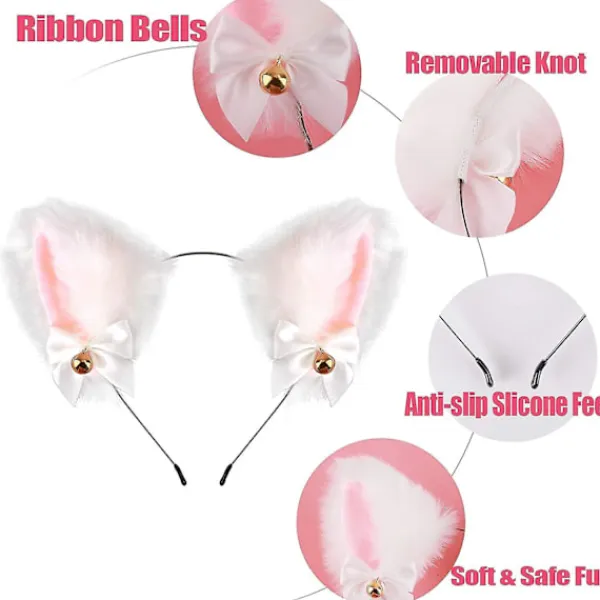 Bedårande Öronband: Dessa öronband är designade i vit färg och svart päls med rosa öron, ser söta och bedårande ut, du kan ta dem som kattöron eller hundöron. Attraktiva Bandringar: Till skillnad från andra hårband gör de fluffiga kattöronen dekorerade med söta band och gyllene klockor detta hårband mer attraktivt, ringar som ger ett silverljud varje gång du rör dig. Bekvämt Material: Tillverkad av konstpäls, mjuk och säker, inte lätt att falla av bandet. Lätt slinga, den belastar inte huvudet och förstör inte din frisyr. One size fits most: Storleken är cirka 9,8 x 3,9 tum/25 x 10 cm, passar de flesta vuxna och barn med bra flexibilitet och hållbar slinga. Perfekt present att dela med dina vänner och familj.