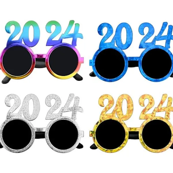 2024 Gott Nytt År Glasögon, 4 st Nyårsfest Glasögon Glasögon för Foto Rekvisita Fancy Nyårsfest Glasögon Ram för Barn Vuxna Nyårsfest Dekoration
