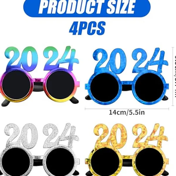 【2024 Gott Nytt År Glasögon】Inklusive 4 Nyårsglasögon med olika stilar och färger, den kreativa designen är en fantastisk fotorekvisita för nyårsfester, så att du, din familj och vänner kan välkomna 2024 i en livlig och glad atmosfär.