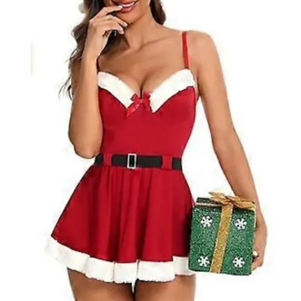 Dam Juldräkt Vuxen Sexig Kostym Fru Jultomten Cosplay Fest Jul Mini Klänningar