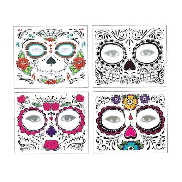 Högkvalitativa temporära tatueringar med olika mönster, de är säkra att använda för din hud och vidhäftning, lätta att riva av, och dessa dekaler är vattentåliga. Du kommer definitivt att älska dessa dekaler och de kan säkert bli en hit under Halloween. De är lämpliga att dela ut på festen.