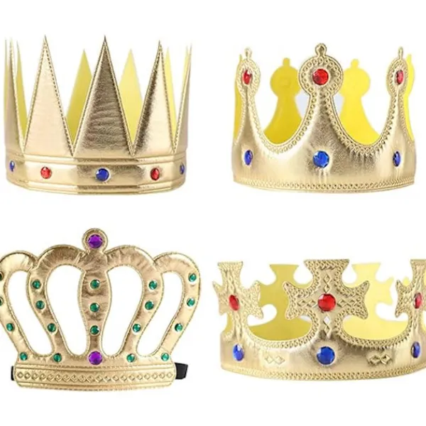 Kungakronset: Du kommer att få 4 kungakronor, 4 stilar, kronans omkrets är cirka 57 cm, höjden är 19 cm, 13 cm, 8,5 cm, 12 cm. Denna storlek passar de flesta barn och vuxna, bär dem och starta din utklädningsresa.