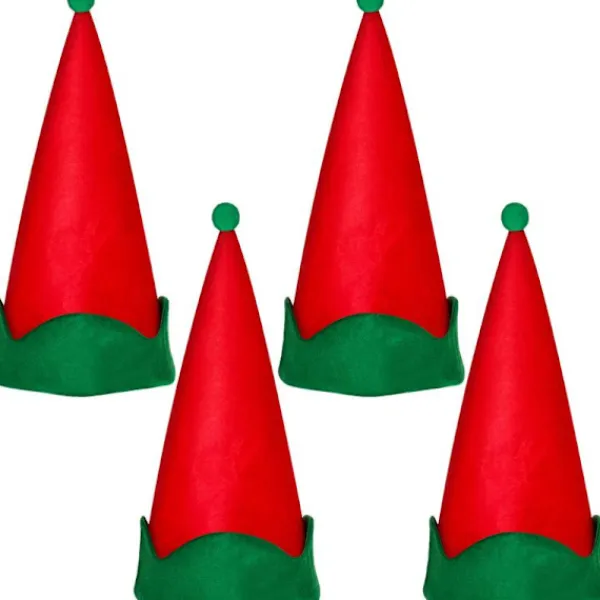 PAKETET INNEHÅLLER: Du får 4 matchande röda och gröna tomtehattar i filt med en dekorativ pom-pom på toppen. Bär denna roliga julhatt nu för att omedelbart liva upp din julaktivitet