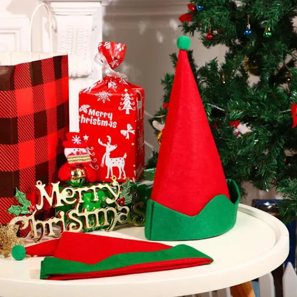 KOMPAKT DESIGN: Klassisk julform och röda och gröna element, dessa söta tomtehattar är som tomtens små hjälpare, lätta och kompakta, lätta att vika för enkel förvaring, efter festen kan du vika ihop dem och placera dem var du vill ha dem, för nästa gång