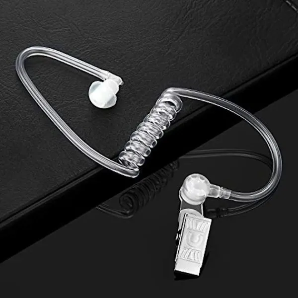 Antal: paketet innehåller 4 förpackningar falska öronproppar, en storlek passar de flesta, inklusive slang, kontakt, metallklämmor och en ersättningsklämma på spiralrör, liten och lätt, enkel installation, den sitter säkert i örat och är mycket bekväm