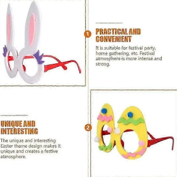 Påsk-tema glasögonbågar är mycket intressanta fotorekvisita, perfekta för festdekoration och kan undvika irriterande fotoposer.
