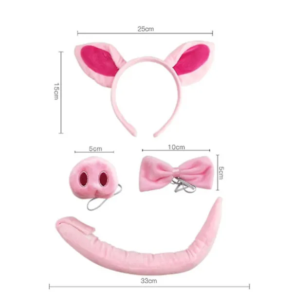 Size details: the pig ears headband is approx 15 x 25 cm/ 5.9 x 9.84 inch; the pig tail is approx 33 cm/ 12.99 inch in length; the pig nose is approx 5 x 5 cm/ 1.96 x 1.96 inch; the bow tie is approx 10 x 5 cm/ 3.93 x 1.96 inch.
