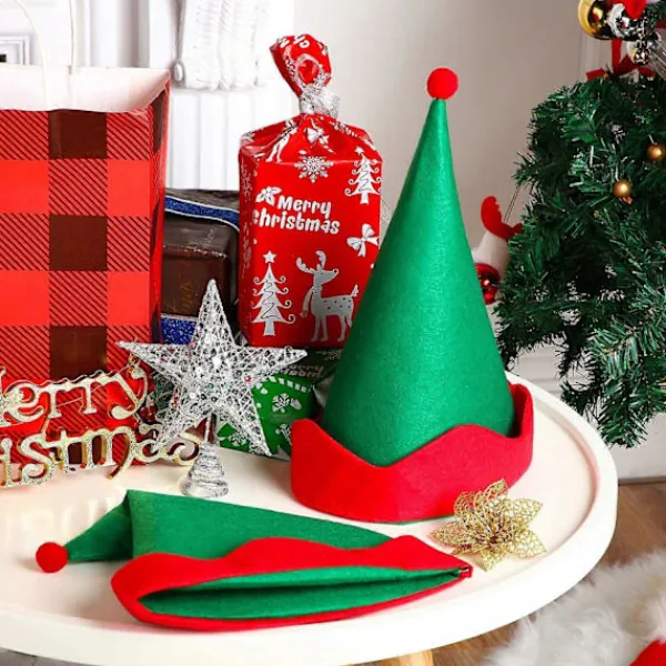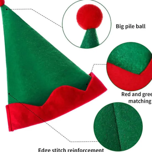 Paket Innehåll: Du kommer att få 4 gröna filttomteluvor, brämen och den söta prickiga pom-pomen på toppen är röda, de två färgerna kompletterar varandra, sätt nu på den här roliga julhatten för att omedelbart lägga till din julanda levande