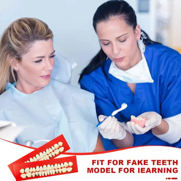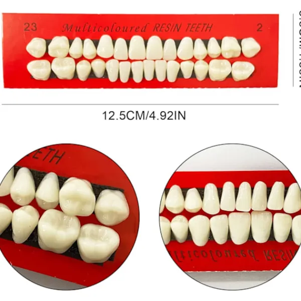 Kvalitetsmaterial: dessa syntetiska tänder är tillverkade av kvalitetshartsmaterial, vilket är pålitligt och säkert, och de är säkra att använda; Färgen är A2, ser ut som riktiga tänder, ger dig en bättre användarupplevelse