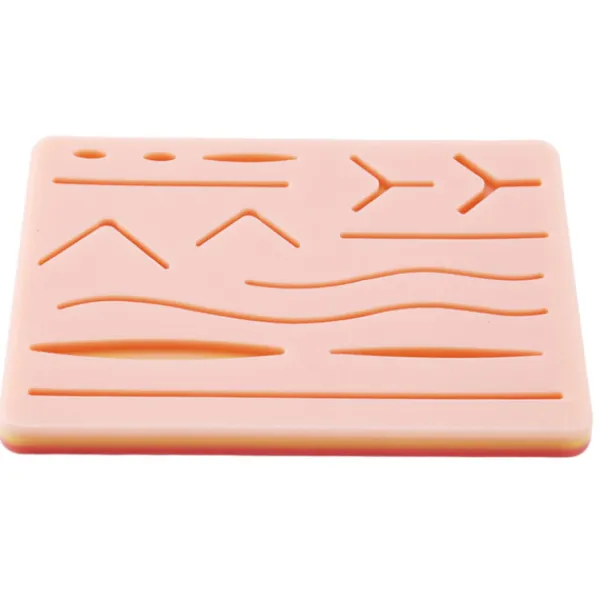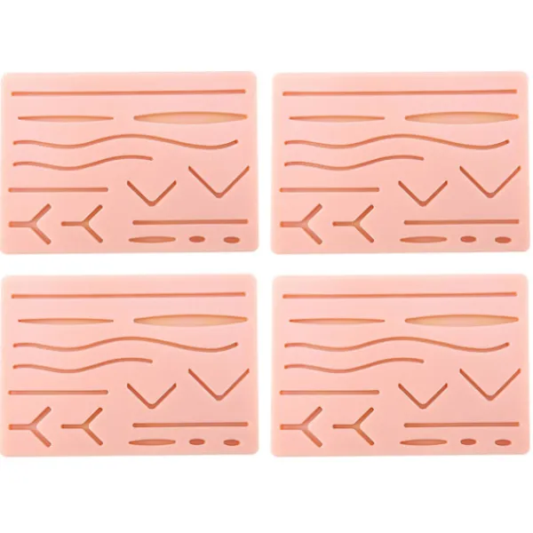 ÖVA SÖMNING AV SÅR Denna sutureträningspad ger dig en rad olika snitt och sömtyper att öva på. Med 11 olika sår i olika djup och typer finns det mycket att lära sig. Dessutom kan du använda en skalpell för att skapa eller justera såren för att passa dina övningsbehov.ÅTERANVÄNDBAR UPP TILL 100 GÅNGER Den robusta sutureträningspaden är designad för att kunna användas upp till 100 gånger, och kanske fler om du tar hand om den väl. Noggrann sömnadsteknik och försiktig borttagning av stygnen kommer att hålla din sömnadspad som ny. Slarv eller dålig teknik kan minska dess livslängd.Denna sutureträningspad är designad för att efterlikna mänsklig hud och är byggd i 3 lager för att replikera hud, fett och muskler. Materialet är tätt men ändå lätt och mjukt, vilket ger en realistisk känsla vid övning, särskilt eftersom det finns ett mer exakt motstånd mot nålen och tråden.UNDERVISNING OCH ÖVNING Med snitt i olika djup och storlekar är denna sutureträningspad perfekt för undervisning. Det är ett utmärkt sätt att visa olika typer av snitt. Sutureträningspaden är ett hygieniskt och bärbart alternativ för att öva sömnad och andra former av behandling.Storlek: 17,5 x 12 cmMaterial: SilikonGelFärg: FotofärgPaketinnehåll: 4 x hudmodellEndast ovanstående paketinnehåll, andra produkter ingår inte.Obs: Ljus och olika skärmar kan göra att färgen på objektet i bilden skiljer sig något från den verkliga. Tillåtet mätfel är +/- 1-3 cm.