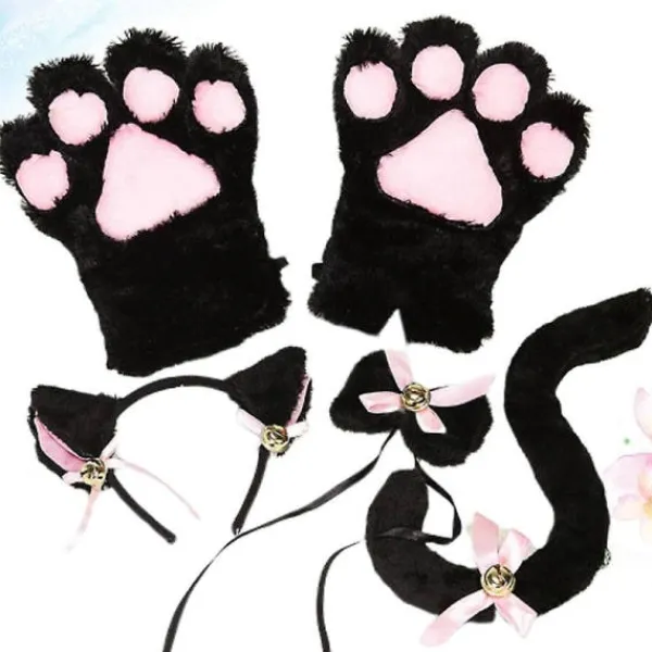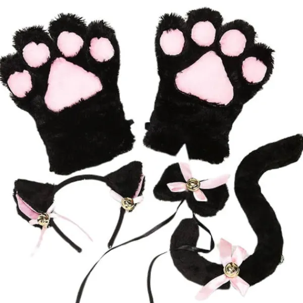 5 st Kreativa Katt Cosplay Kostym Kattunge Svansöron Krage Tassar Handskar Anime Lolita Gothic Set För Party Cosplay (svart)