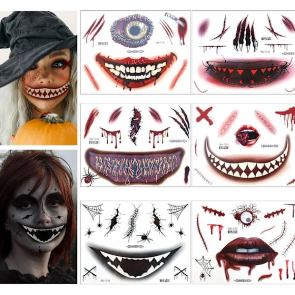 Hjärtlig gåva: Letar du efter en unik och spännande gåva? Vår Halloween-skräckkollektion är svaret! Överraska dina vänner, familj eller nära och kära med dessa realistiska ansikts tatueringar och låt dem släppa loss sina inre monster vid alla tillfällen.