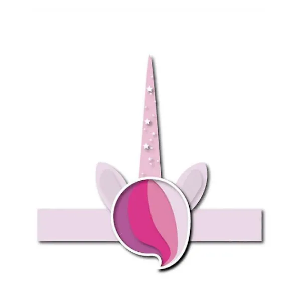 6 Rosa enhörningskartonghuvudbonader 27 cm Perfekt för en enhörningfest. Dessa kartonghuvudbonader med enhörning säljs i set om sex.