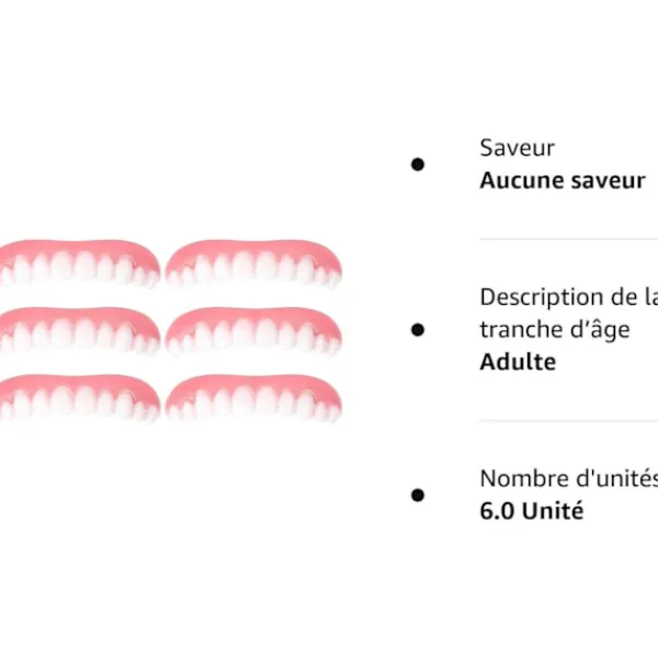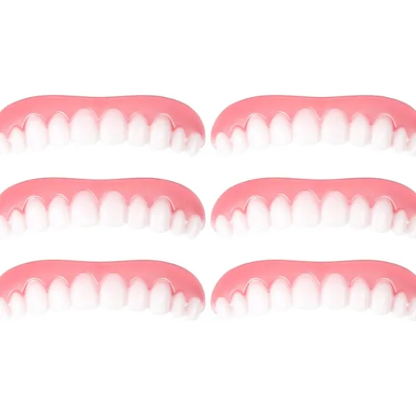 Säkert silikonmaterial: Vi applicerade mjukt och skonsamt silikonmaterial och säkert monteringsmaterial för att du ska kunna sätta det i munnen, paketet innehåller 6 st ögonblickliga fanerproteser, tillräcklig mängd för din långvariga användning