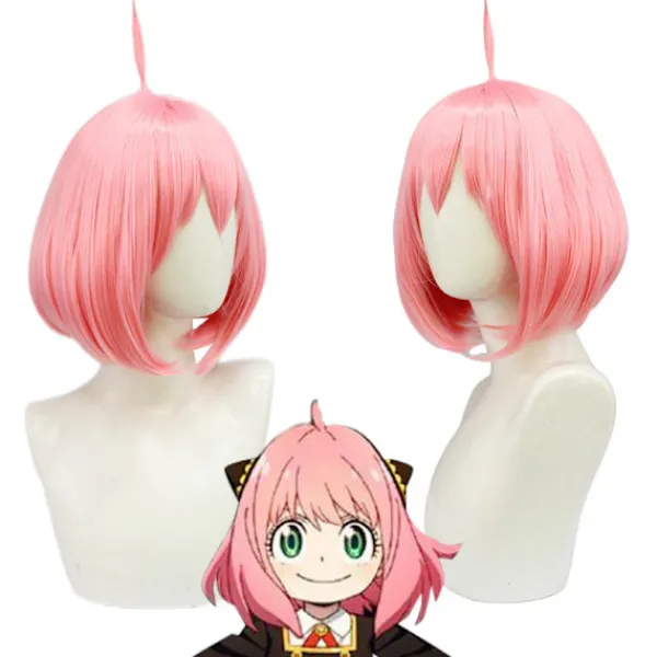 Ania peruk cos peruk Ania Fujie kort hår simulering rosa hårbotten cosplay