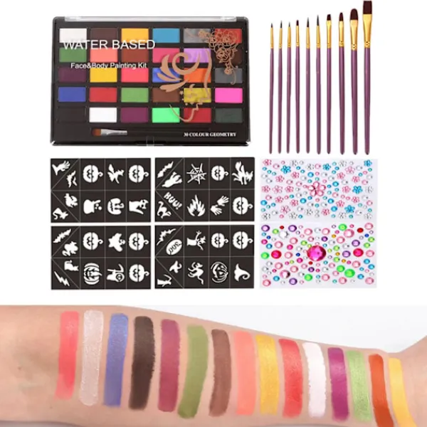 Beskrivning: 30 Färgers Kombination: Det finns 30 stycken vattenbaserade ansiktsmålningsfärger, 10 stycken penslar, 4 stycken schabloner och 2 stycken glitter som du kan blanda färger med för att skapa olika mönster. Hög Kvalitet: Texturen på denna sminkansiktsfärg är mjuk och delikat, vilket kan passa huden tätt och hålla länge. Lätt Att Använda: Denna kroppsfärg är lätt att pigmentera och torka. Och färgen är ljus, glansig och inte lätt att ta bort smink. Lätt Att Bära: Pigmentet är olösligt i vatten och faller inte av lätt efter torkning. Och detta ansiktsmålningskit är perfekt att bära med sig. Bred Användning: Detta ansiktsmålningskit är lämpligt för barn och vuxna, används ofta i födelsedagskalas, högtider, sminktemafester, cosplayfester och rollspel, etc. Specifikation: Produktstorlek: Låda: 23cmx15cmx1cm/9.06inchx5.91inchx0.39inch Penna: längd 16.4cm-18.8cm/6.46inch-7.40inch Material: nylon aluminium trä Paketet Innehåller: 1 Set Vattenbaserade Ansiktsmålningsfärger 10 Stycken Penslar 4 Stycken Schabloner 2 Stycken Glitter Obs: Färgen kan vara något annorlunda på grund av färgkalibreringen på varje enskild bildskärm. Vänligen tillåt en liten mätavvikelse på grund av manuell mätning.