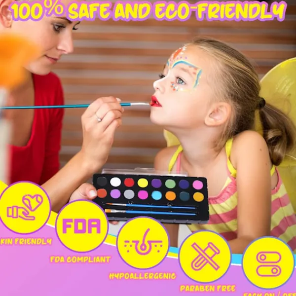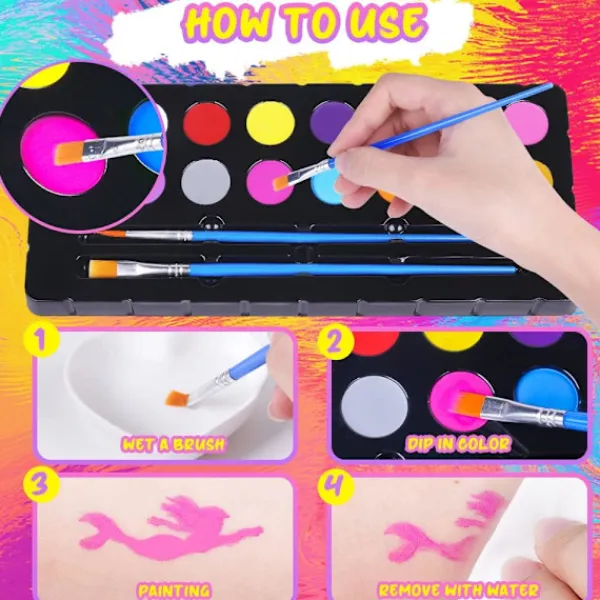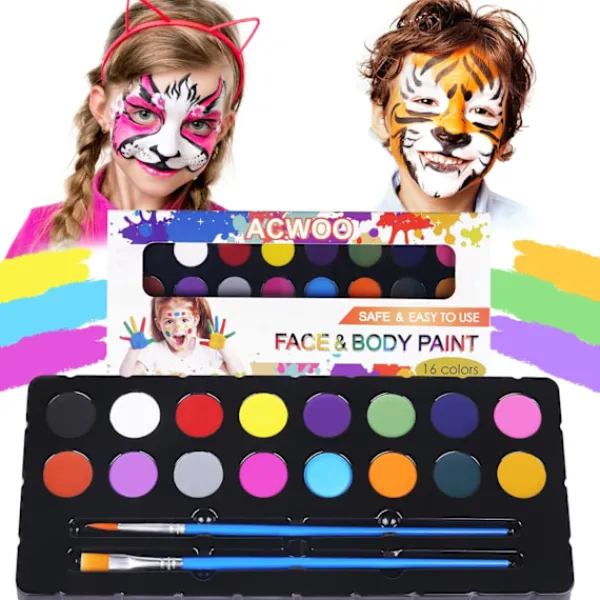 【16 FÄRGER ANSIKTSMÅLNING】 Innehåller 16 färger av ansikts- och kroppsfärg, 2 penslar. Vilken kombination av olika färger som helst kan ge nya färger, du kan göra det själv när du vill! Obs: Denna produkt är en oljig produkt och tar lång tid att torka.) 【SÄKER ATT ANVÄNDA】 Ansiktsfärgen är gjord av högkvalitativa material, allergivänlig, hudvänlig, skonsam och icke-irriterande. Den bibehåller också ansiktets elasticitet och motstår sprickbildning. Säker och skonsam mot känslig hud, perfekt för barn eller vuxna med känslig hud. 【STIMULERA FANTASIN】 Denna ansiktsfärg kan användas för både ansikte och kropp, vilket kan stimulera barns fantasi och kreativitet, uppfylla kraven för att skapa olika målningar i ansiktet eller på kroppen och låta dina barn njuta av det roliga med kreativitet. 【VID ANVÄNDNING】 Detta ansiktsmålningsset är perfekt för alla speciella evenemang, som Halloween, VM, fotbollsmatch, födelsedagsfest, prydnadsfest, jul, SFX-smink och mer. En bra present till barn och vuxna.