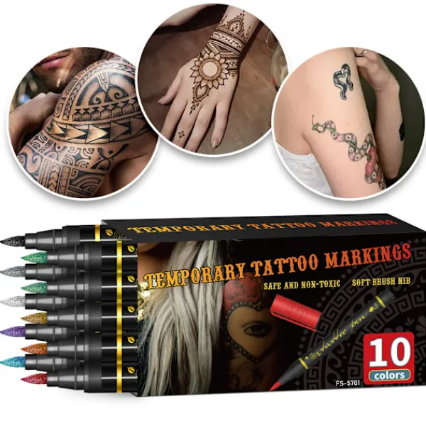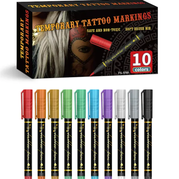 1、Hög kvalitet: Våra kroppskonstmarkeringspennor är tillverkade av premiummaterial, vilket säkerställer ett jämnt och konsekvent bläckflöde, vilket gör att du kan skapa exakta och intrikata mönster på din hud. 2、Snabbtorkande: Dessa tillfälliga kroppskonstpennor torkar snabbt, vilket minskar risken för att din konst smetas ut eller kladdas. Du kan tryggt visa upp dina mönster utan att oroa dig för att de ska förstöras. 3、Mångsidig: Med 10 livfulla färger i varje låda har du ett brett utbud av alternativ att välja mellan när du designar din kroppskonst. Från subtila och delikata mönster till djärva och iögonfallande skapelser, dessa pennor har allt du behöver. 4、Säker för huden: Våra kroppskonstmarkörer är formulerade för att vara säkra att använda på huden. De är giftfria, allergivänliga och lätta att ta bort, vilket gör dem perfekta för både vuxna och barn att experimentera med kroppskonst. 5、Långvarig: När bläcket från våra kroppskonstpennor har torkat sitter det kvar på huden i timmar, så att du kan njuta av dina mönster hela dagen eller natten. Oavsett om du ska på fest, festival eller bara vill lägga till lite tillfällig stil till ditt utseende, kommer dessa pennor att sitta kvar.