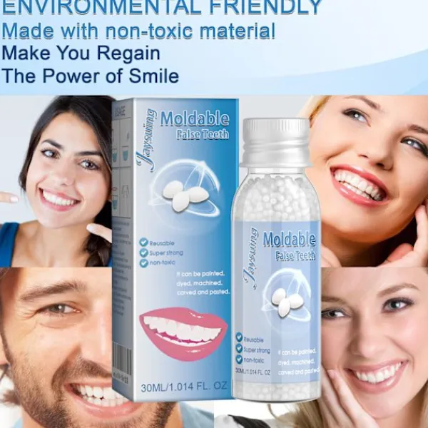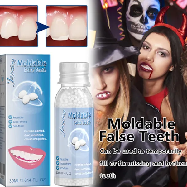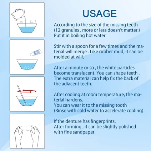Efter kylning vid rumstemperatur hårdnar materialet. Du kan bära den till den saknade tanden (skölj med kallt vatten för att påskynda kylningen)