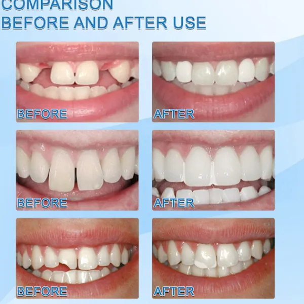 Efter någon minut blir de vita partiklarna genomskinliga. Du kan forma tänderDet extra materialet kan hjälpa till att fixera baksidan av de intilliggande tänderna.