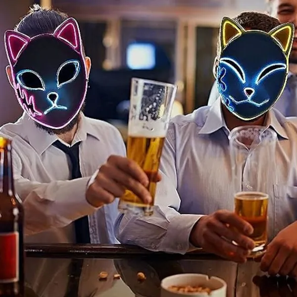 Lämplig för många tillfällen: LED-masken antar en ansiktsdesign med en justerbar rem, som är mycket lämplig för jul, Halloween, maskeradbal, fest, karneval och andra tillfällen, lätt och lätt att bära.