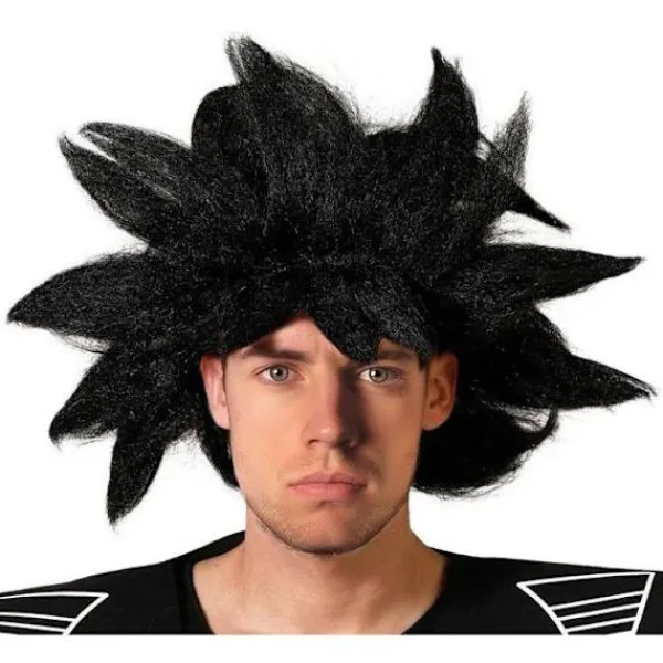 Tillbehör för UtklädnadT svart Manga Parapatte för MänAnimerad FilmFör att komplettera din utklädnad som Manga Samurai för män, här är en peruk med raka, svarta hår på huvudet, så att du kan förvandla dig till en Manga-karaktär som i animationsserien Dragon Ball.Utklädnad:1 peruk med långt, krusigt hår i svart som står upp runt huvudet och bildar spetsar.