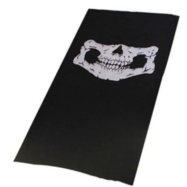 En tubformad huvudduk med dödskalletryck som kan formas till en mängd olika typer av huvudbonader. Exempelvis skidmask, piratmössa, paintballmask, scarf, bandana, halsduk och många andra varianter. Gjord i stretchbart polyesterfiber som är mycket elastiskt.