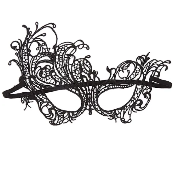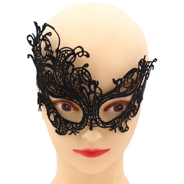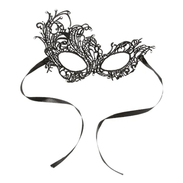 En svart ögonmask som är perfekt för Halloween, maskerader och liknande evenemang. Masken är tillverkad av vacker spets och ger ett glamoröst och sensuellt intryck. Den är enkel att ta på och fästs genom att du knyter ett snöre bakom huvudet.