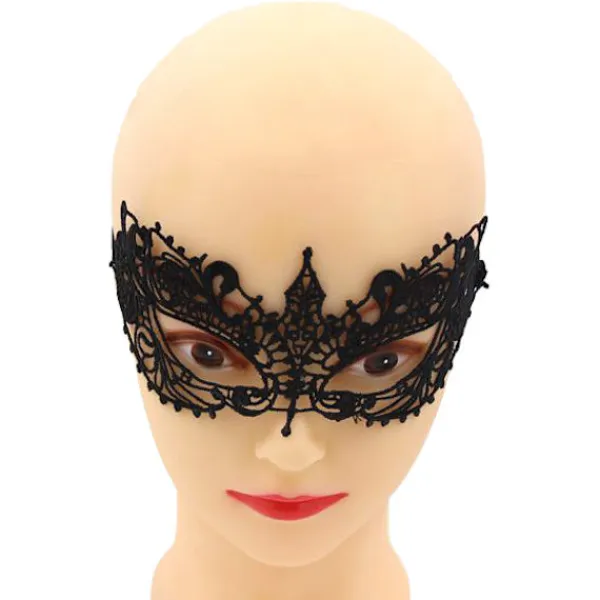 En svart ögonmask som är perfekt för Halloween, maskerader och liknande evenemang. Den ger en glamorös och sensuell känsla.