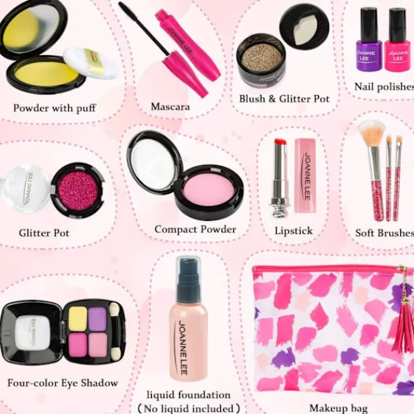 ❤【Säker och hållbar】 Det realistiska och bedårande setet, tillverkat av färgglatt EVA-skum, är inte äkta och lämnar inga kemikalier på huden. Verktygen är gjorda av texturerat skum som ser äkta ut. De är mycket väl limmade så att du inte behöver oroa dig för att små skumbitar ska falla ut.;❤【Lära och leka】Utmärkt barnmakeup, hjälper barn att utveckla fantasi, motorik och uppmuntrar socialisering. Barn kan identifiera sig med vuxenvärlden och leka med setet. Bär det överallt som en tjejs prinsessaklä upp-lek.;❤【Glad familjetid】 Perfekta falska sminkleksaker, spendera tid med föräldrar, främja interaktion mellan föräldrar och barn. Njut av att leka med smink, även som konversationsstartare, hjälp barnen att få nya vänner i festspel, roligt för alla åldrar.;❤【Perfekta sminkleksaker för barn】Rekommendera detta sminkleksakset för små flickor som älskar att leka med mammas smink utan att göra röra. Detta set är helt falskt men ser och känns äkta ut! Ingen röra och ingen färg, bara lek!;❤【De bästa presenterna till din lilla prinsessa】Dessa barnmakeup är designade för flickor 3 år och uppåt, bra val för julklappar, födelsedagspresenter, julklappar och överraskningspresenter. Dina tjejer skulle definitivt bli glada och ha kul med sina vänner och familjer.