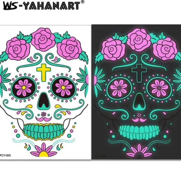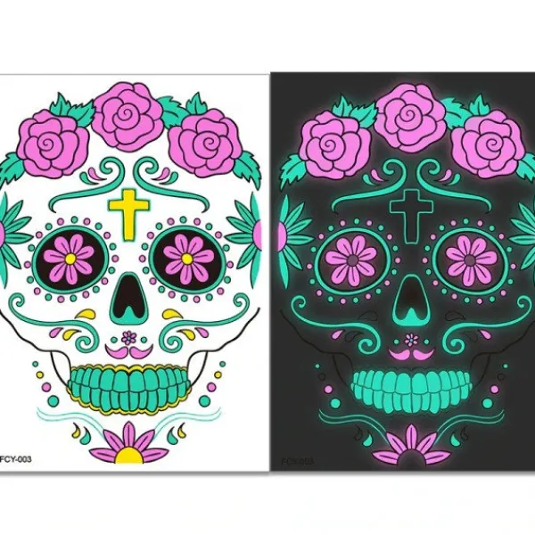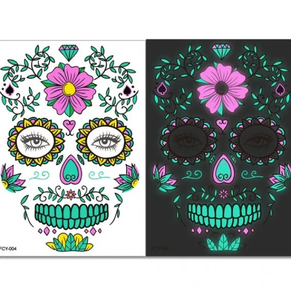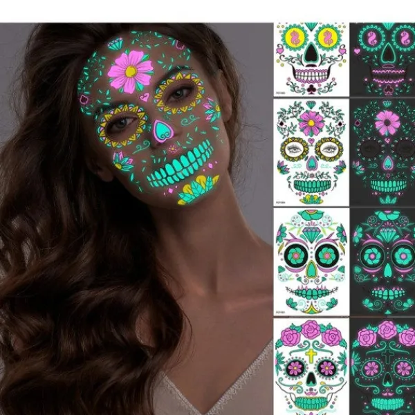 Ansiktsbehandling tatuering dekal Bicolor luminescens Vatten till papper Vuxna och barn Halloween påsk jul Rave Fest