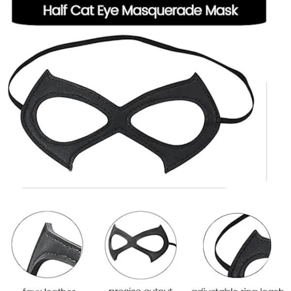 KVALITETSLÄDER: Kattmaskinen är gjord av högkvalitativt mjukt PU-läder, naturligt ofarligt för kroppen och giftfritt, bekvämt att bära. Kattens halva ansikte och öron design gör att du ser charmig och mystisk ut. Skapa en attraktion kring din dolda identitet med masker i olika former.