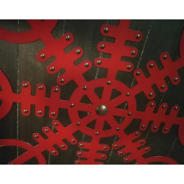 Funktioner: Läderarmband och grepp, skölden kan hängas med den medföljande kedjan.