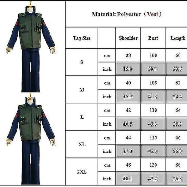 Kontrollera storlekstabellen noggrant innan du köper kostymen.