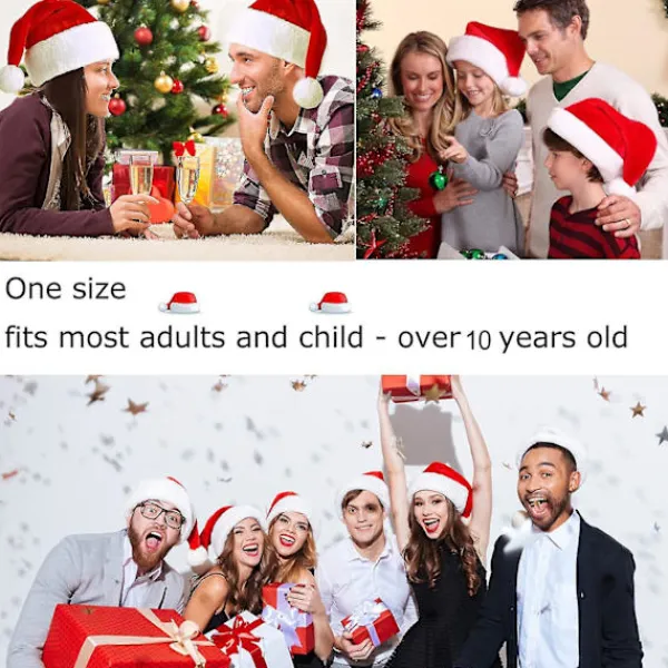 Storlek på vår tomtehatt: 31 * 47 cm (B*H) hatt i vackra färger är bekväm för de flesta vuxna och även för barn över 7 år. Den stora tomtehatten är perfekt för tomtekostymer, julgransdekorationer, lek snögubbe, temafest och mer