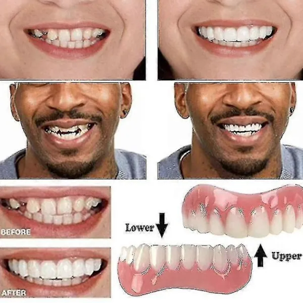 Funktioner: Designad för NEDRE / ÖVRE lager av tänder, dekorera dina tänder, gör dem vita och ljusa. Tillverkad av silikonmaterial för säker och mjuk passform. Enkel montering med vidhäftning, enkel borttagning med varmt vatten. En speciell form gjord för att mäta för att dölja tänderna vridna, fläckiga, saknade och glest placerade, det perfekta leendet av tänderna. Extra tunn flexteknik minimerar talstörningar. Specifikation: Material: Silikon Färg: Som bilden visas Storlek: ca. Som bilden visas Antal: 1 set Obs: Övergång: 1 cm = 10 mm = 0,39 tum Inget detaljhandelspaket. Tillåt 1-2 cm fel på grund av manuell mätning. se till att du inte har något emot det innan du lägger bud. På grund av skillnaden mellan olika bildskärmar kanske bilden inte återspeglar objektets faktiska färg. Tack Paketet innehåller: 1 x Övre falska tänder och Nedre falska tänder
