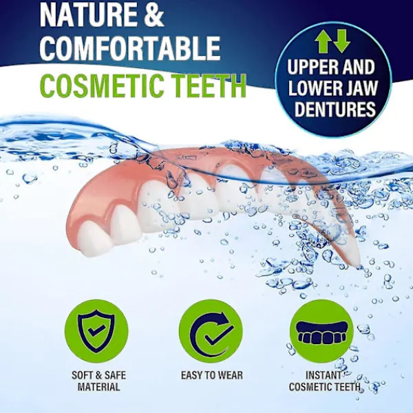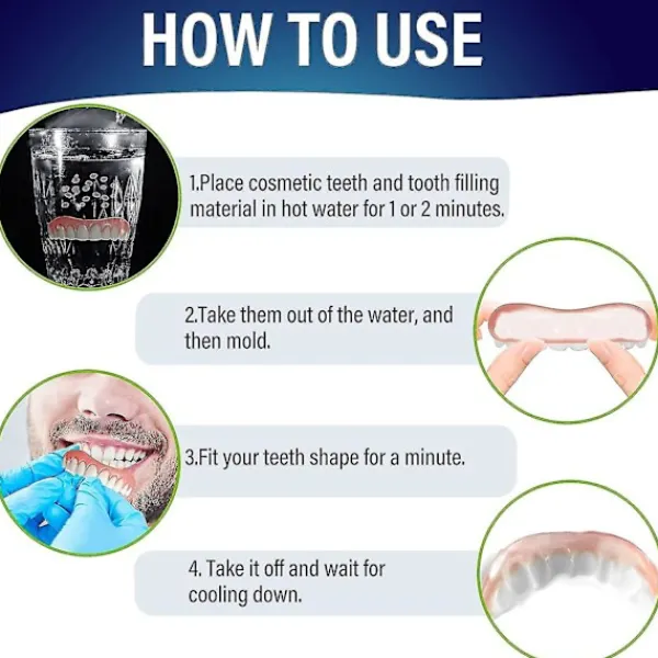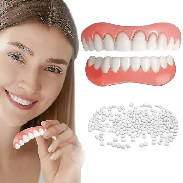 Inget tandbesök behövs: Våra kosmetiska tänder hjälper till att dölja dina saknade, böjda, fläckiga och trasiga tänder. Frihet att le, äta och dricka set du bär .Storlek Justerbar: En one size passar de flesta. Lägg den i varmt vatten i 2 minuter, vilket gör den mer flexibel, sätt fast proteserna över dina befintliga tänder. Bekväm att använda: Lätt för dig att rengöra, du kan förvara dem i lådan efter användning. Bekvämt för dig att bära dem vart du vill, vilket sparar mycket tid och energi. Lämplig för de flesta tillfällen: Oavsett om det är en dejt, en anställningsintervju eller en fest, kan du använda denna tandprotes för att hjälpa dig att återfå självförtroende och öka din charm.