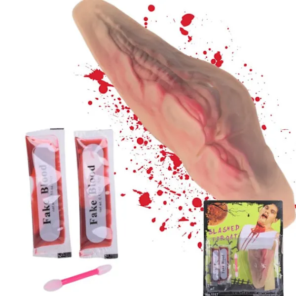 Den konstgjorda skadan är ett realistiskt Halloween-tillbehör som är perfekt för smink och kostymer. Skadan imiterar ett snitt nära halsen, och skapar en dramatisk och skrämmande effekt.