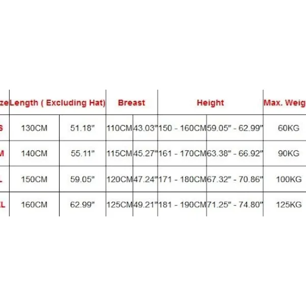 Storleksdiagram: (Det finns 2 eller 3 cm storleksfel på grund av olika mått och skor ingår inte)