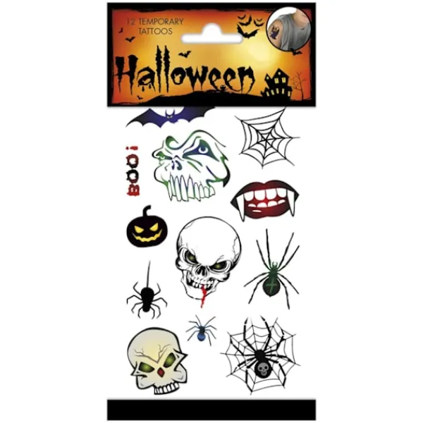 Häftiga engångstatueringar med olika läskiga halloweenmotiv.